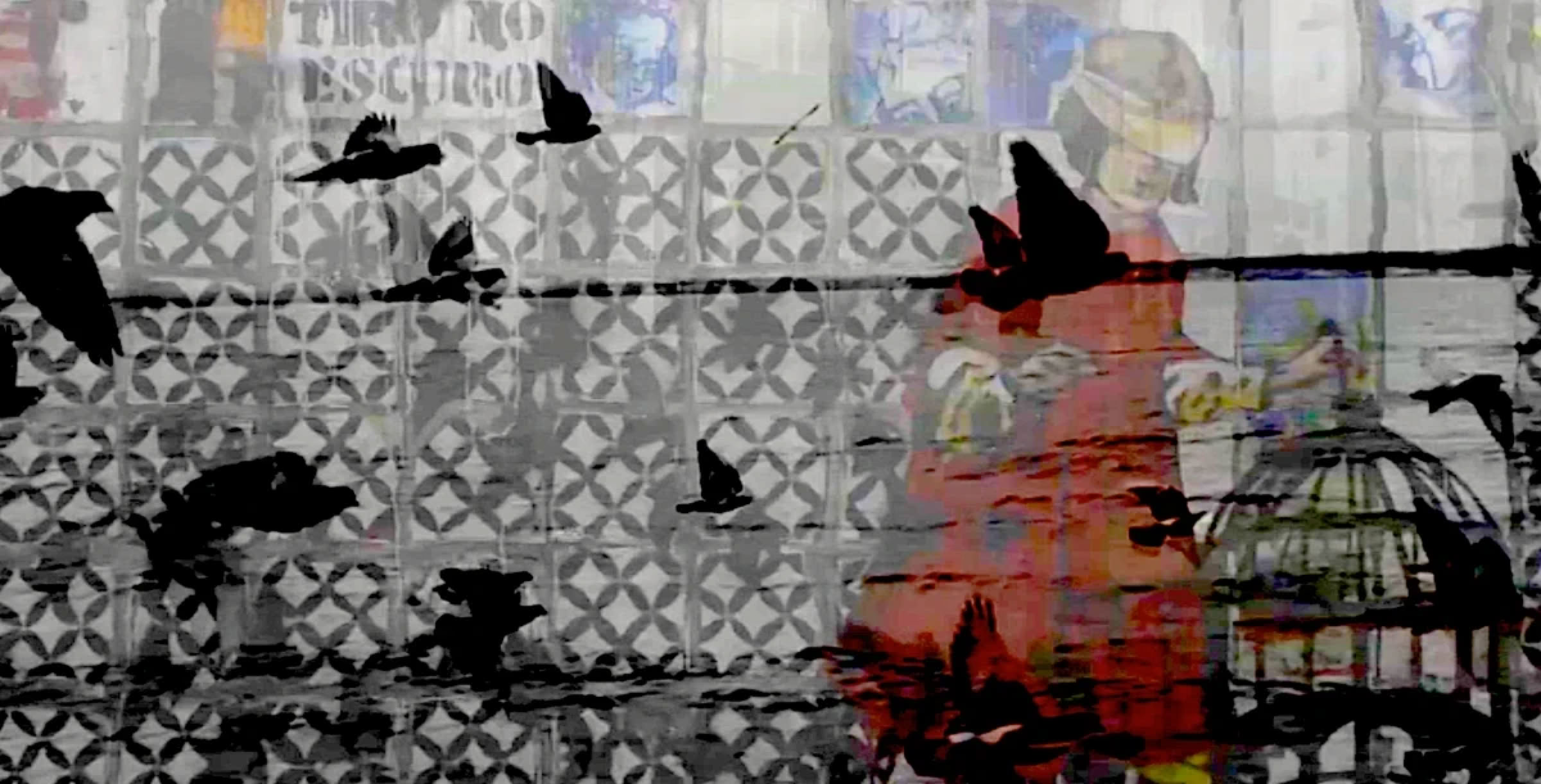 e se entrelaça com imagens abstratas e poéticas de Lisboa,