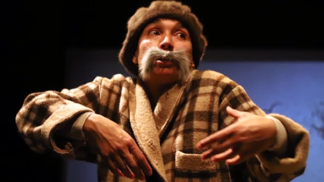 Um desenhador de areia, um músico e uma actriz.