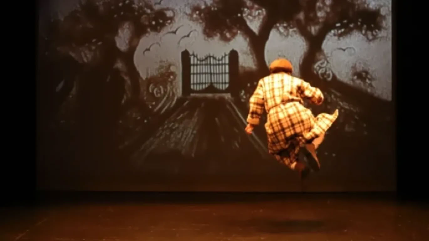 Um desenhador de areia, um músico e uma actriz.