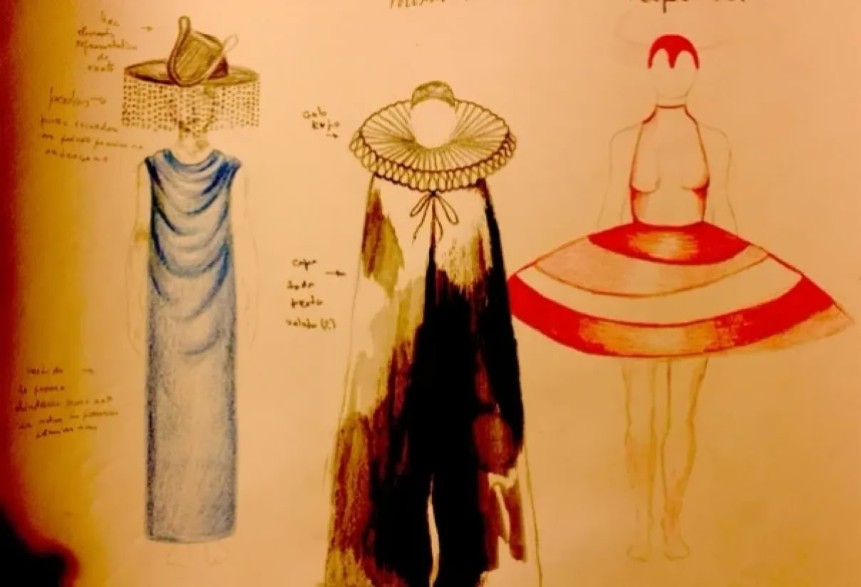 Músicos: Bruna de Moura (violoncelo), Leonor Palha (violino) Pedro Moura (guitarra)/Costureira Helga Rodrigues Produção Trupe dos Bichos
